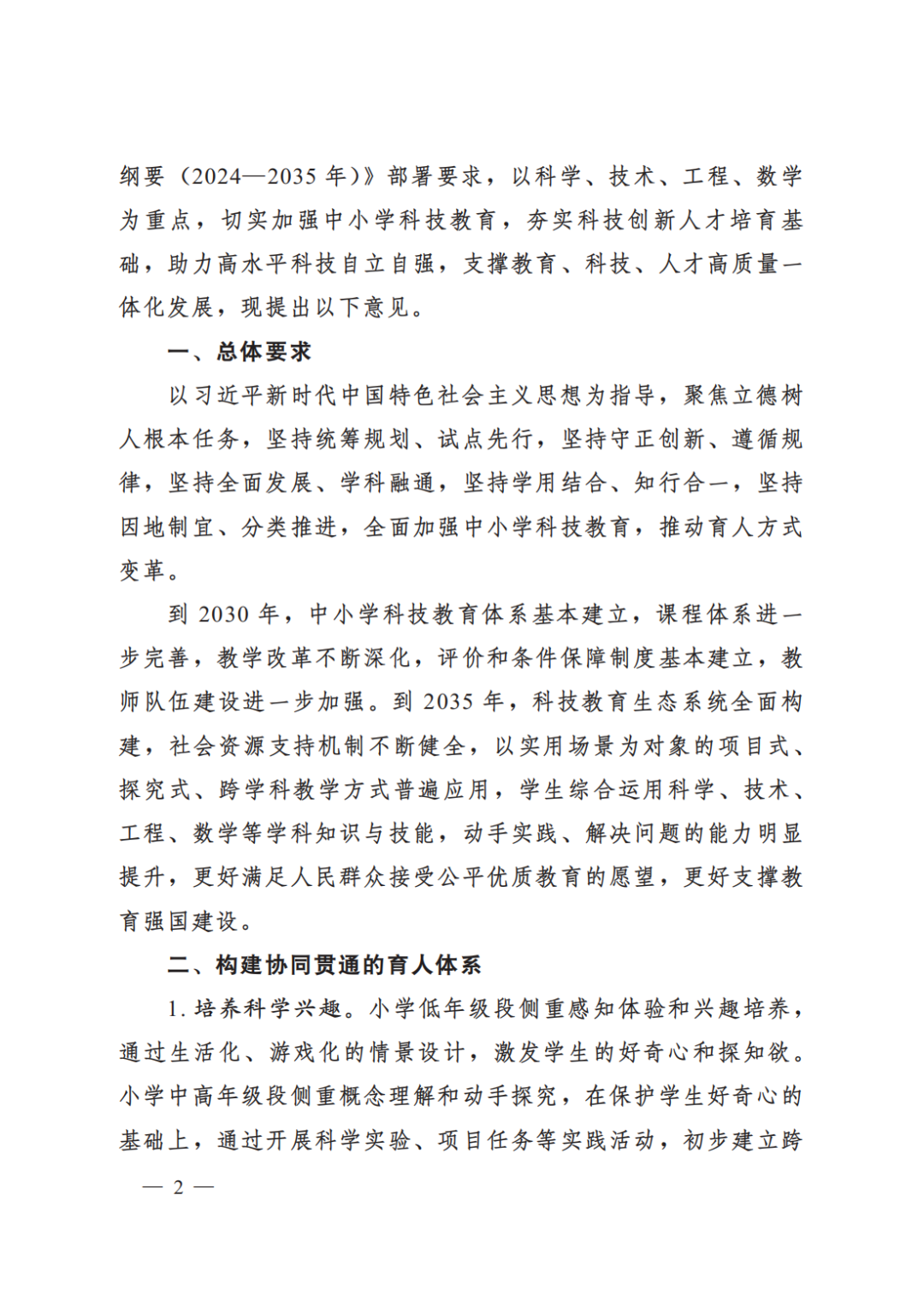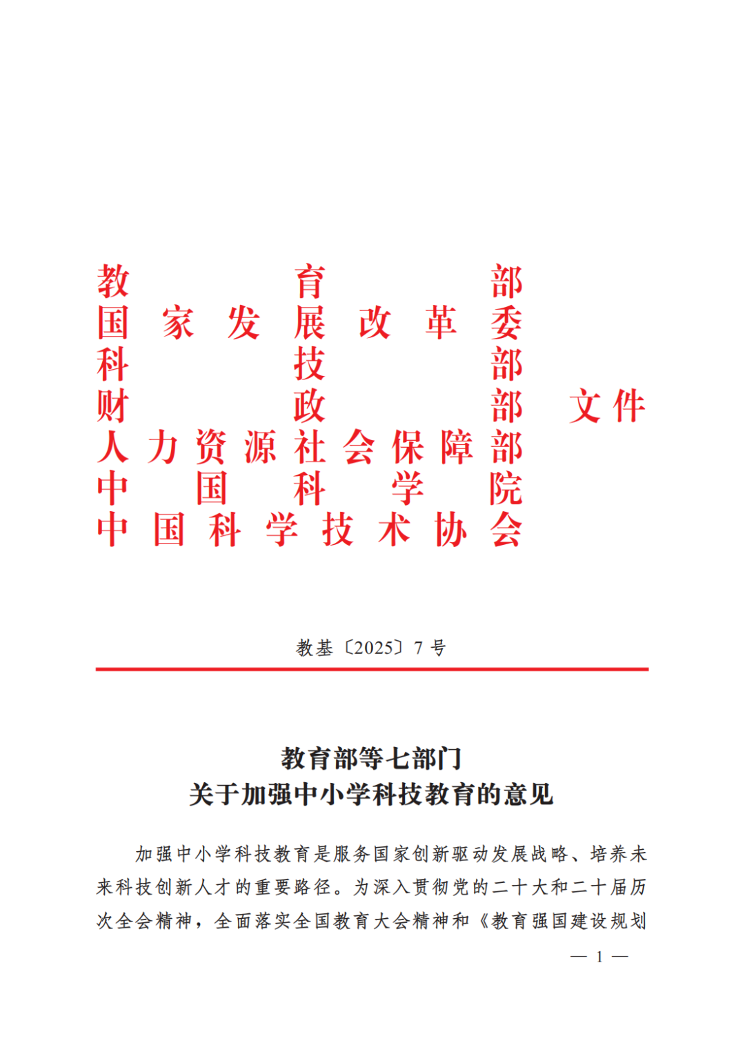 七部门联合发文:全面加强中小学科技教育,2035年建成科技教育生态