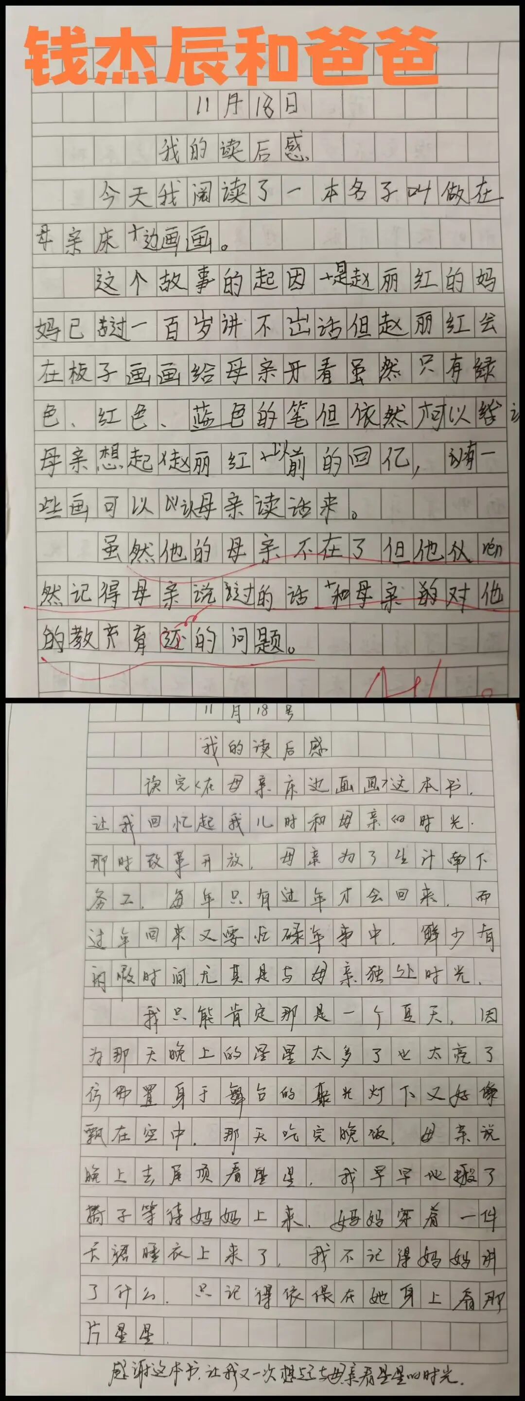参加百班千人共读活动,共读《在母亲床边画画》时,我选择不做过多引导,而是让孩子自由翻阅,寻找他们眼中的独特之处。