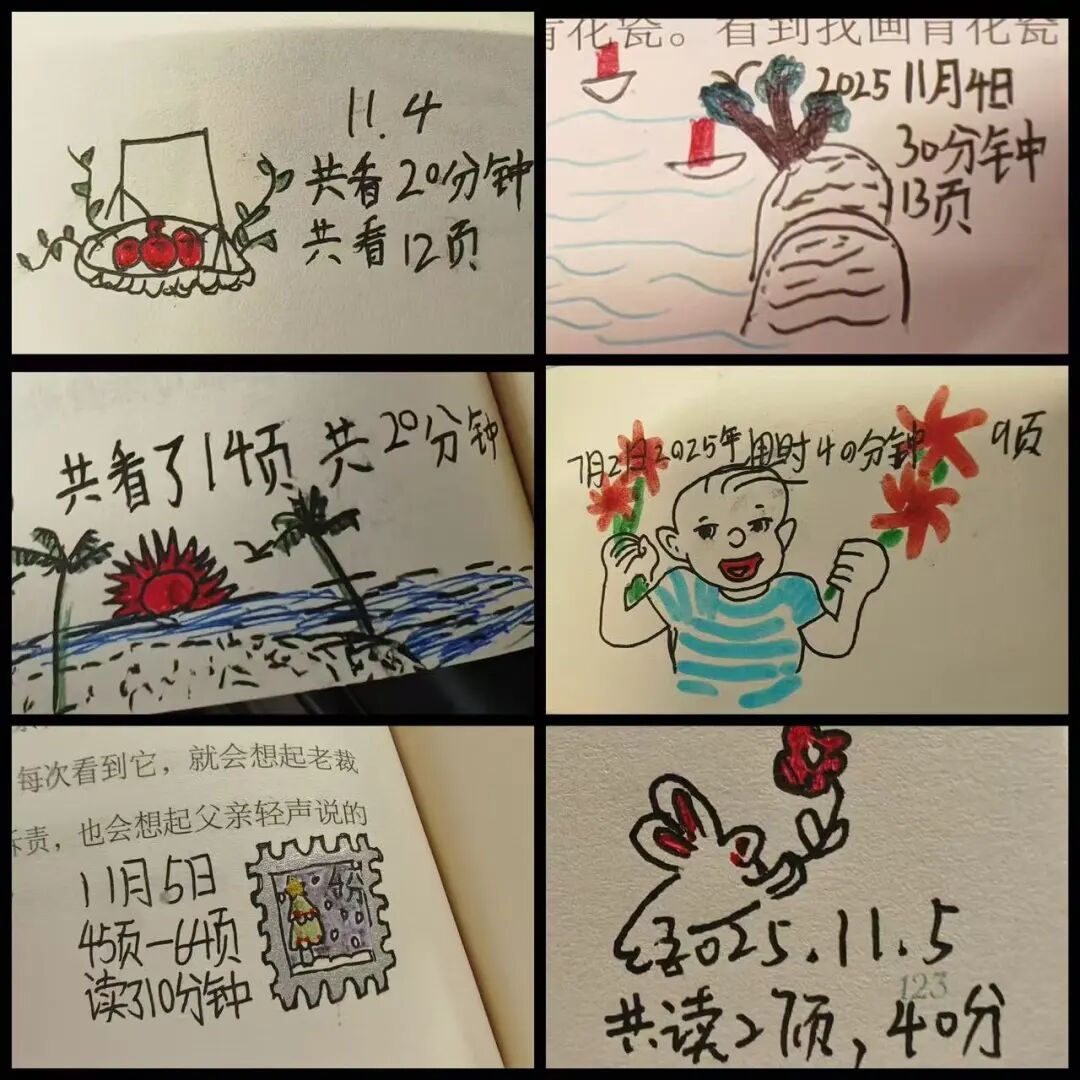 每天坚持阅读,并在读到的那一页右下角标注好阅读的日期、时长、页数,还学着作者一样,用小图标做上记号,鼓励自己养成每日阅读的好习惯。