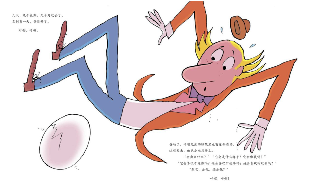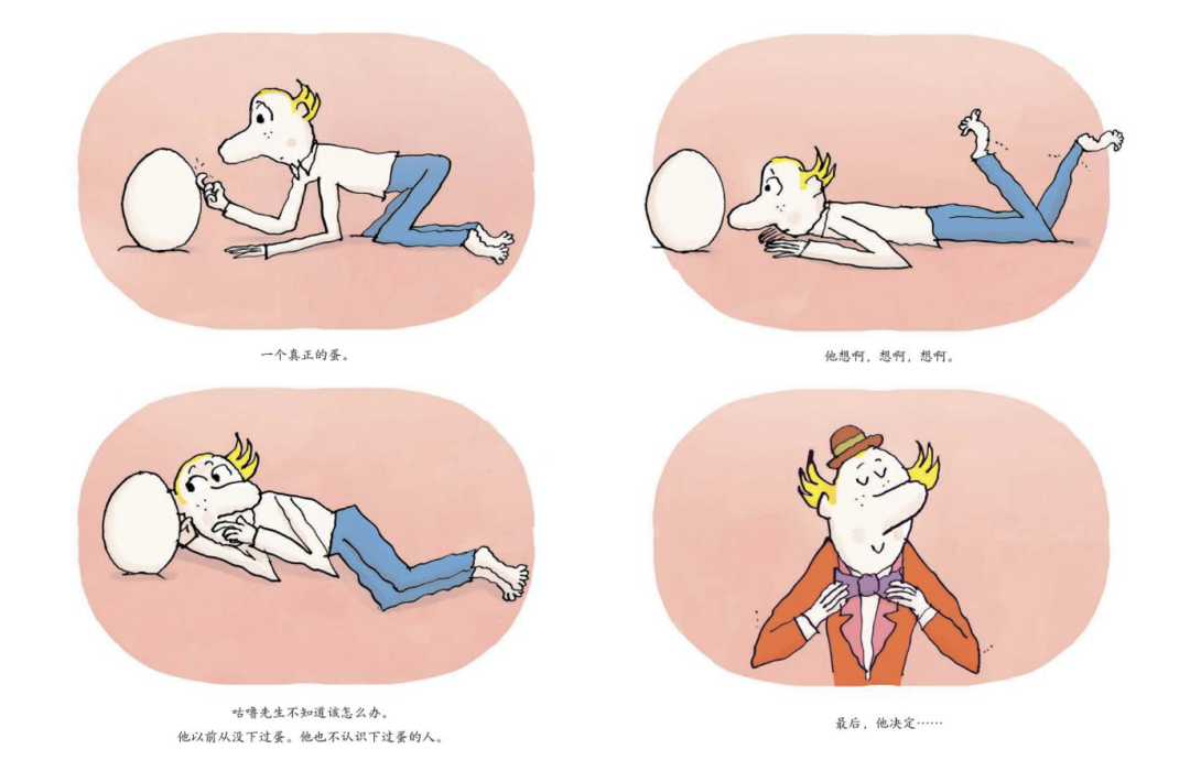 故事中段,更绝的来了:悉心照料蛋的咕噜先生,在蛋快孵化的前夜——竟然逃跑了!