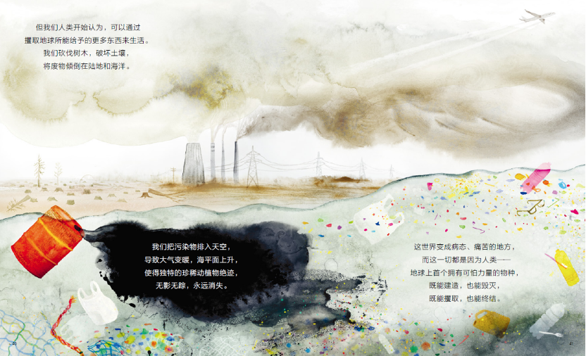 书里没有生硬的说教,但当读到人类活动对森林、海洋的影响时,合上书的孩子很可能会若有所思。教育的最高境界,不就是引导孩子自己得出正确的结论吗?