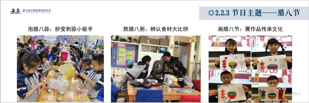 学校小学1-5年级实施主题式课程。主题式课程把教育与生活结合起来,模糊学科边界;是落实学校全人教育理念的重要抓手,更是承载劳动教育的重要载体;与德国的综合课程有异曲同工之妙。孩子们在学习《蒜宝宝的成长日记》这一主题时,每个孩子都亲自动手种植蒜苗,按时给蒜苗浇水、施肥,最后收获自己劳动的果实,在老师的帮助下一起来做“蒜苗炒鸡蛋”。在学习《家》这一主题时,给家人做爱心早餐。一年级孩子的作品也让人眼前一亮。在学习《节日主题——腊八节》时,大家一起泡腊八蒜,秒变剥蒜小能手;熬腊八粥,开展辨认食材大比拼活动;画腊八节,学生展示手抄报作品,讲述腊八节的习俗,传承中华传统文化。