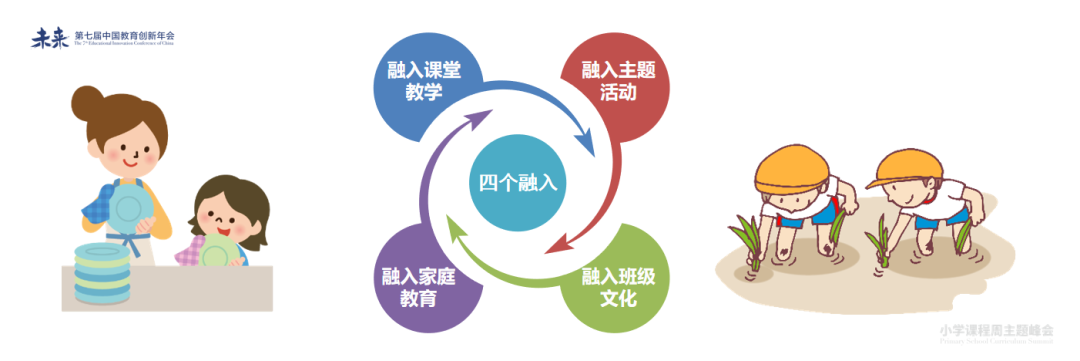 在教学实践中,学校提炼出劳动教育的“四个融入”,即:融入课堂教学、融入主题活动、融入班级文化、融入家庭教育。横纵结合,使劳动教育全面有效的渗透到中小学生日常教育全过程,并取得了较好的实践效果。一、融入课堂教学